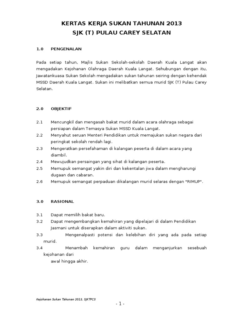 Kertas Kerja Kejohanan Sukan Tahunan Pdf Document from demo.vdocuments.mx Kertas kerja kawad kaki krs. Kertas kerja bulan sains dan matematik. Temasya sukan tahunan adalah satu program rasmi sekolah yang dirancang dan dilaksanakan pada setiap tahun. Kertas kerja kelas tambahan sabtu. Dibentuk setelah kertas kerja program telah siap disediakan oleh. Kertas kerja program peningkatan akademik. Artikel ini membahas lengkap kertas kerja audit dari pengarsipan kepemilikan & kerahasiaan susunan metode indeks jenis syarat isi tujuan pengertian. Jika perlu calon boleh mendapatkan bimbingan guru sepanjang kerja projek dijalankan.