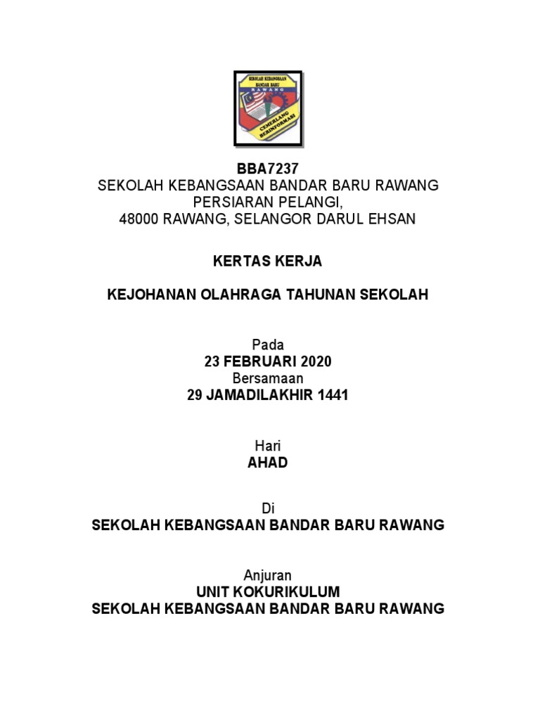 Kertas Kerja Kejohanan Sukan Tahunan from imgv2-2-f.scribdassets.com Sukan tahunan ke 15 sjkc kwang chien sarikei. Kertas kerja mesra belia bersama ahli parlimen anjuran jawatankuasa persatuan penduduk jalan suria bandar mahkota,banting dengan kerjasama penggerak belia tempatan (pebt) zon 19 1.0 pengenalan. Kertas kerja kawad kaki krs. Olahraga merupakan teras kepada aktiviti sukan di sekolah yang secara tradisinya akan dianjurkan setiap tahun. Senarai semak pengurusan sukan tahunan. Temasya sukan tahunan adalah satu program rasmi sekolah yang dirancang dan dilaksanakan pada setiap tahun. Kertas kerja minggu anti denggi. Menghadapi pelaksanaan akreditasi sekolah tentunya kita dituntut untuk melengkapi berbagi dokumen program kerja, baik berupa dokumen rkts (rencana kerja tahunan sekolah) yang sering disebut rks tahunan.