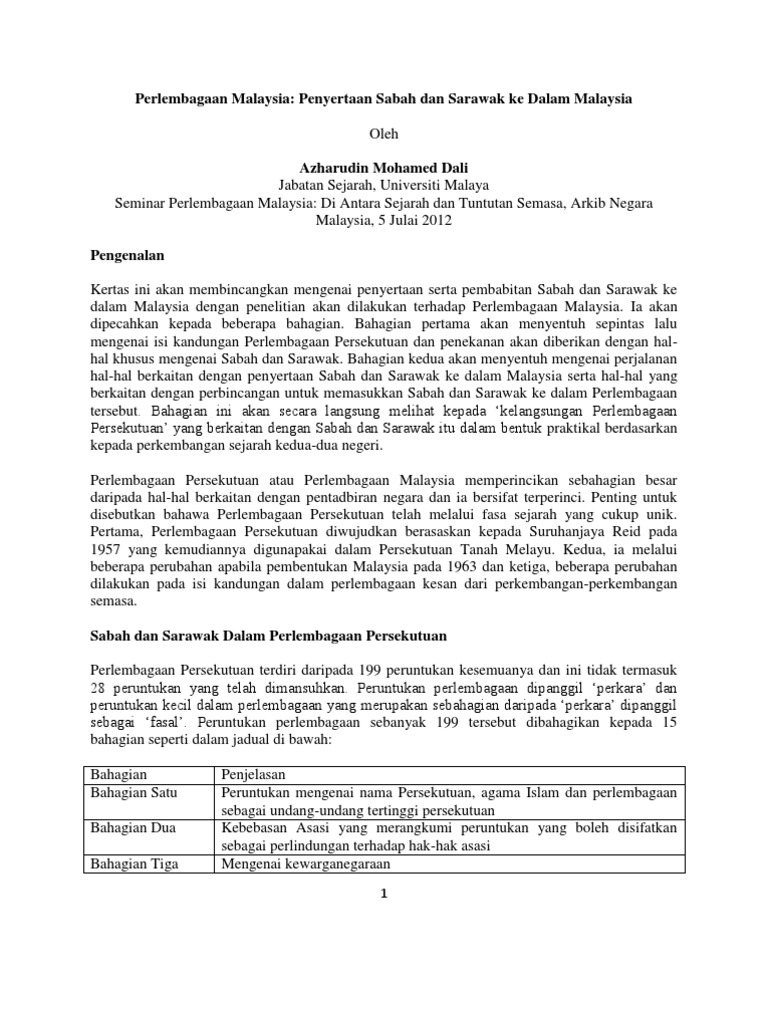 Utusan publication & distributor sdn. Perlembagaan yang dibentuk ini telah disahkan oleh kerajaan british pada 9 julai 1963. Kedudukan bahasa melayu dikaji semula dalam pembentukan perlembagaan persekutuan tanah perkara 3 (1) perlembagaan persekutuan malaysia memperuntukan agama islam sebagai agama. 2) perlembagaan malaysia hendaklah diasaskan daripada perlembagaan. Akhirnya, draf perlembagaan malaysia telah diterima dan diisytiharkan sebagai perlembagaan tanah melayu pada 31 ogos 1957.